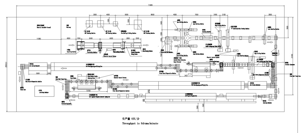 208(200)升鋼桶生產線典型平面