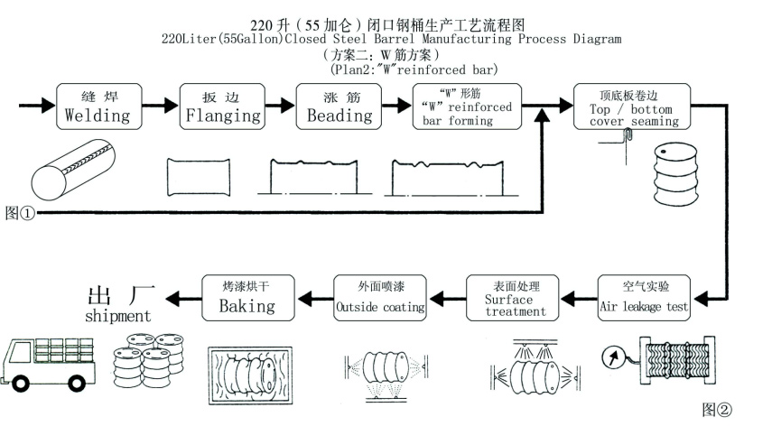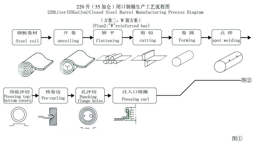 220升(55加侖)閉口鋼桶生產工藝