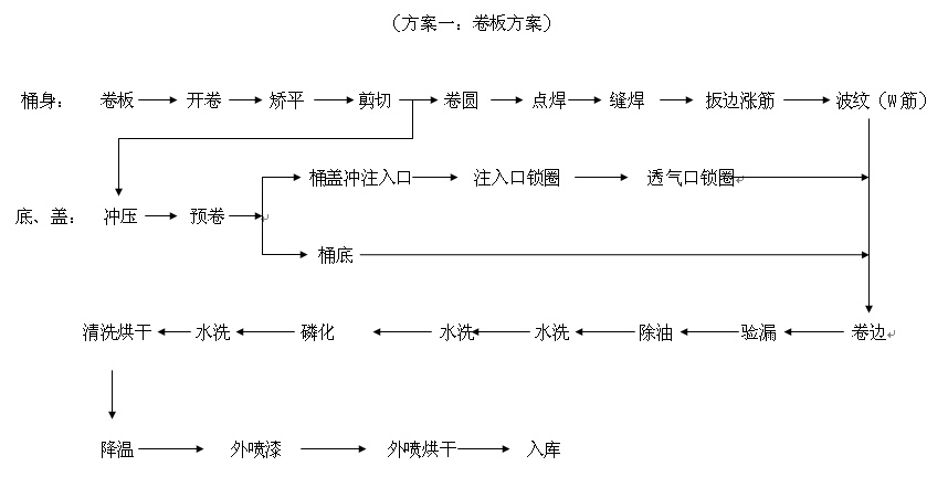 200升閉口鋼桶生產線工藝方案方案一
